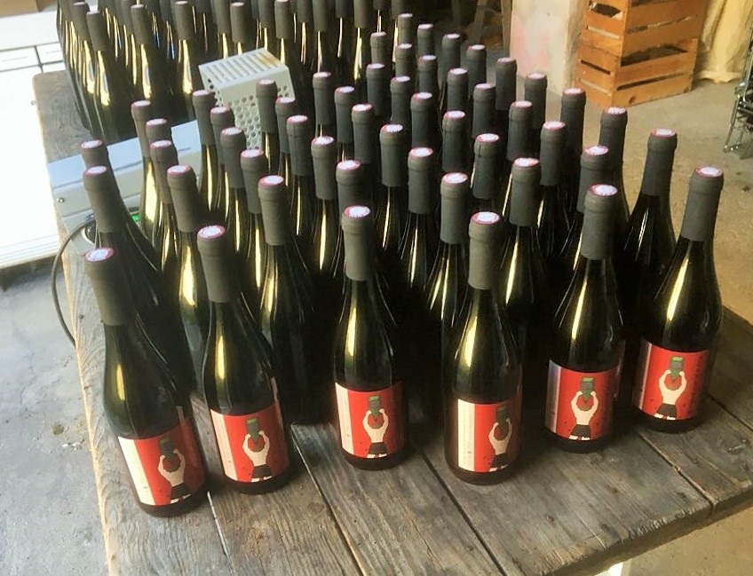 La macération carbonique 50 % égrappé et 50 % non égrappé. Après la pressage, la fin de fermentation s'effectue en cuve de fibre en verre. La mise en bouteille réalisée sans ajout de produit chimique.